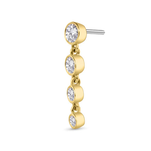 The 4 Bezel Dangle is a versatile gorgeous piece that can be used on a number of different piercings such as a navel piercing or lobe piercing. It is the perfect piece for anyone who wants to add some extra sparkle to their look!