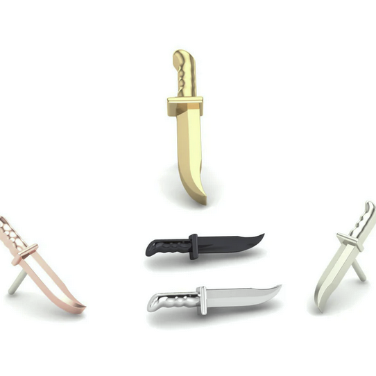 The Clip Point End is a bold design inspired by the sharp, angular form of a knife blade. With its precise, sleek shape, it evokes a sense of strength, precision, and utility. The clean lines and sharp point make it a striking piece, perfect for those who appreciate edgy, bold designs in their body jewelry.