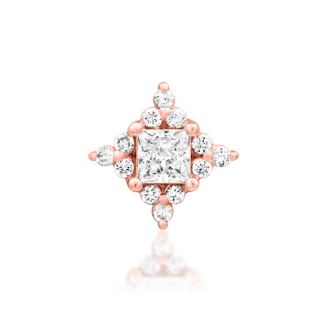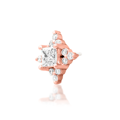 Our Threadless Diamond Enchant are available in solid 14k yellow gold, white gold and Rose Gold. The diamond measures 3mm, 1.1mm x12.