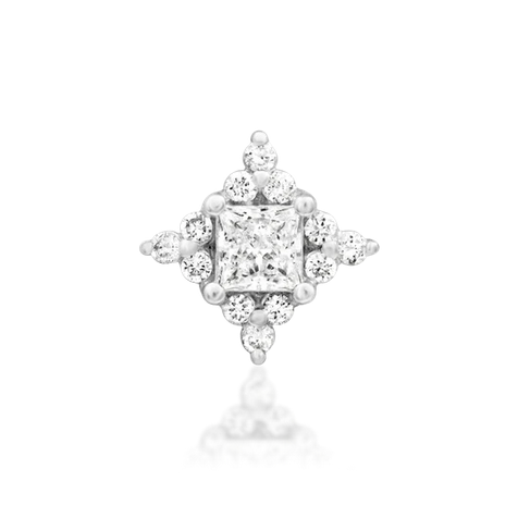 Enchant: A sparkling princess-cut diamond, surrounded by shimmering diamonds, creates an aura of pure enchantment and brilliance.
