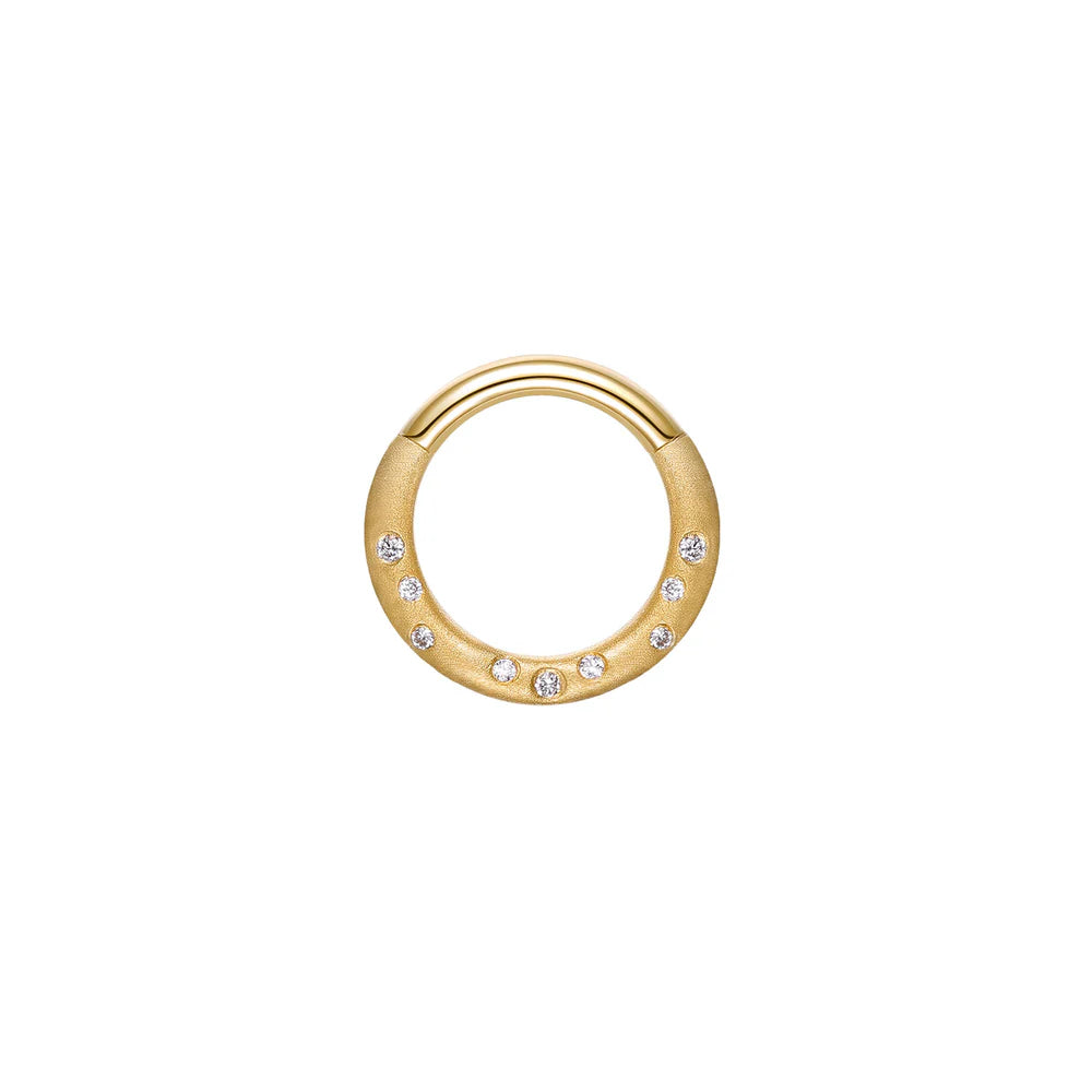 Flush set scattered diamond hinged clicker hoop