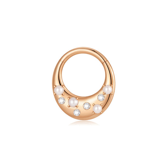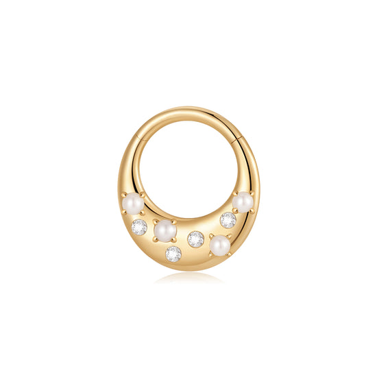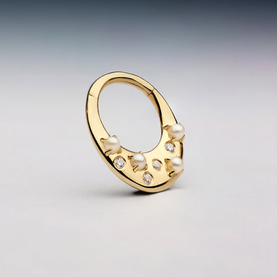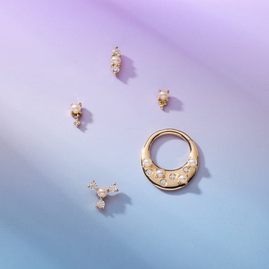 Glow Getter features a mix of luminous Freshwater Pearls and Moissanite, artfully arranged to create a piece that’s equal parts softness and shine.