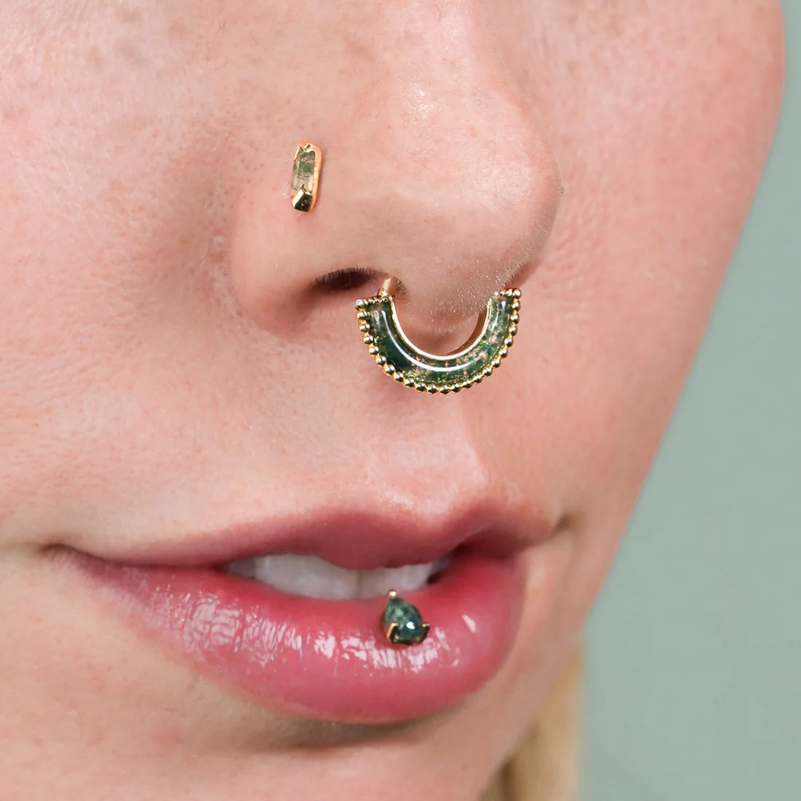 The Harmonic Clicker features genuine moss agate, a gemstone celebrated for its rich green striations and natural depth. Each stone is one-of-a-kind, with unique patterns and vibrance that bring individuality to every piece. Designed for both elegance and versatility, this clicker adds a refined organic touch to any curation.