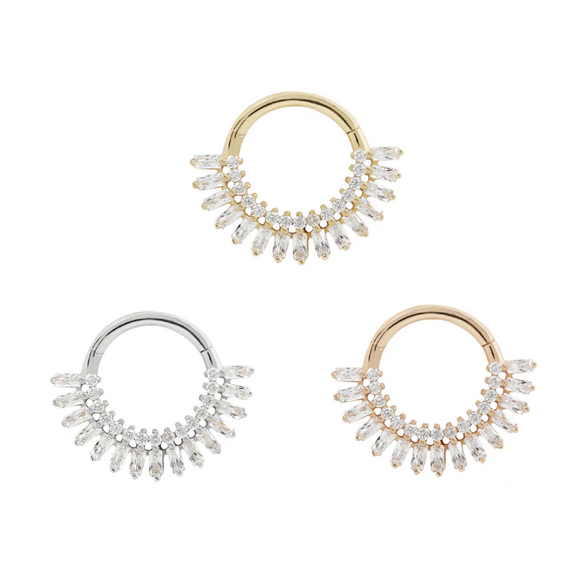 The hinged clasp allows you to easily open and close it's perfect to wear in your septum, earlobe, daith piercing, and much more!