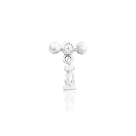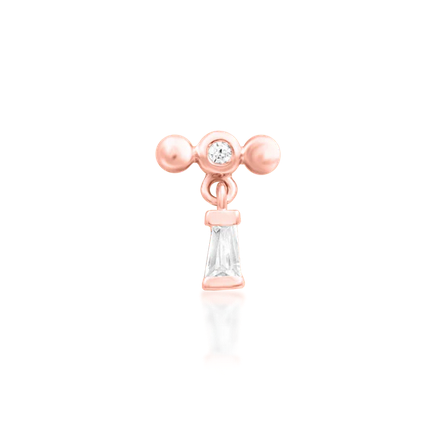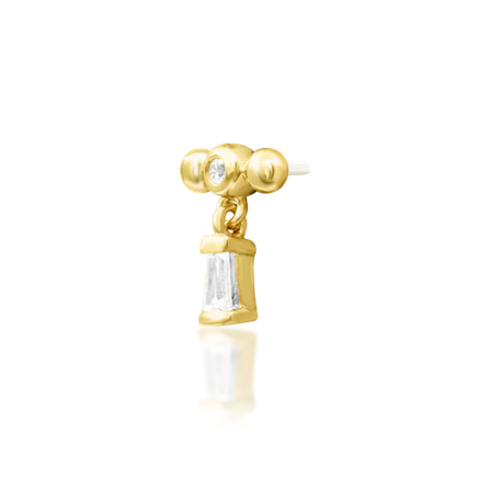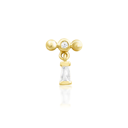 Introducing Ingrid! A low profile 14k gold threadless 2mm bezel end with a matching pear CZ dangle that measure 2x3mm. It is perfect for adding a touch of movement to any piercing.