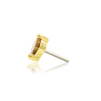 A 1.5x3mm genuine moss agate stone on a high polished 14kt prong.