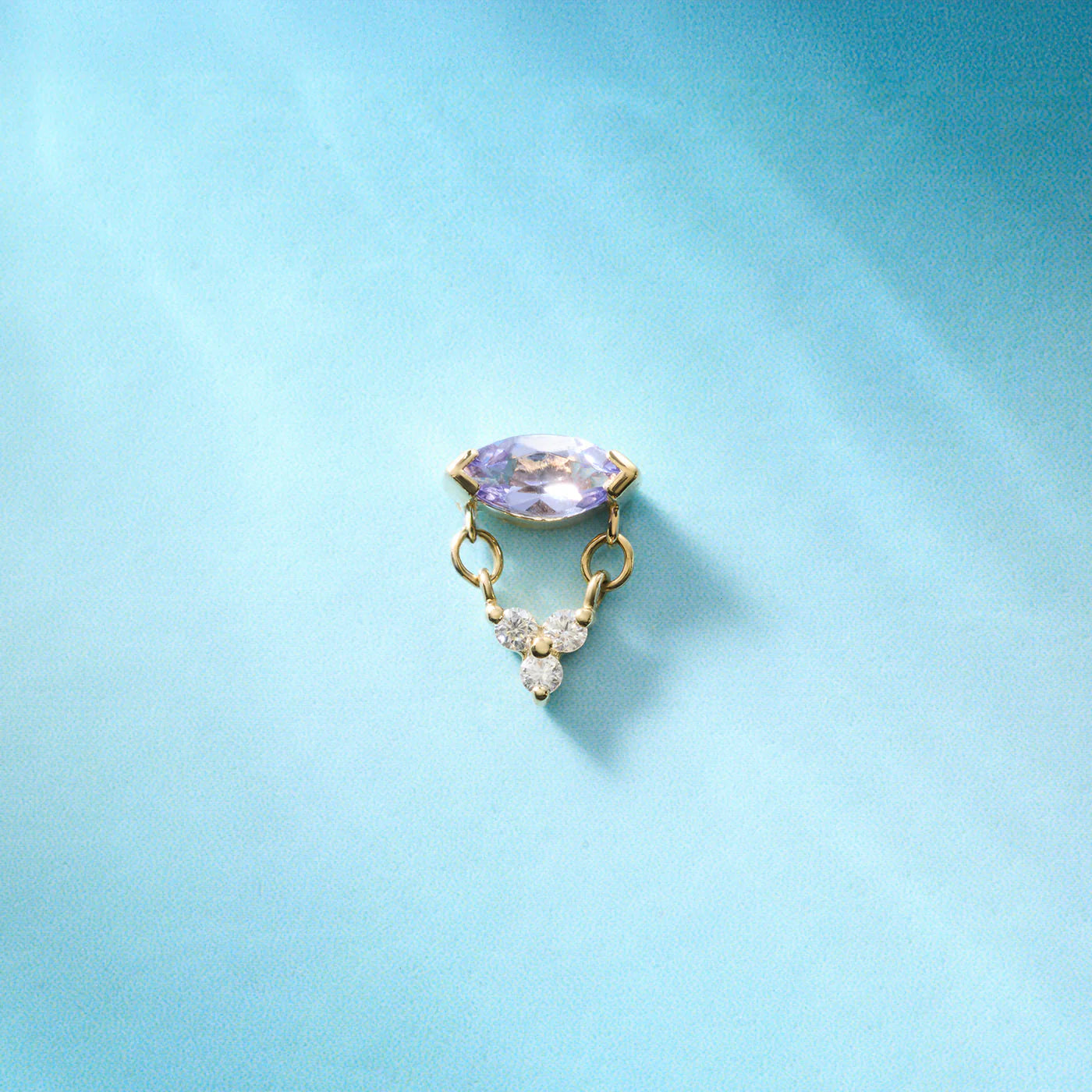 When the sun sets, ‘Night Fall’ takes over. This end features a bold marquise-cut Tanzanite that glows above a trinity of Moissanites, both catching the light with every step.