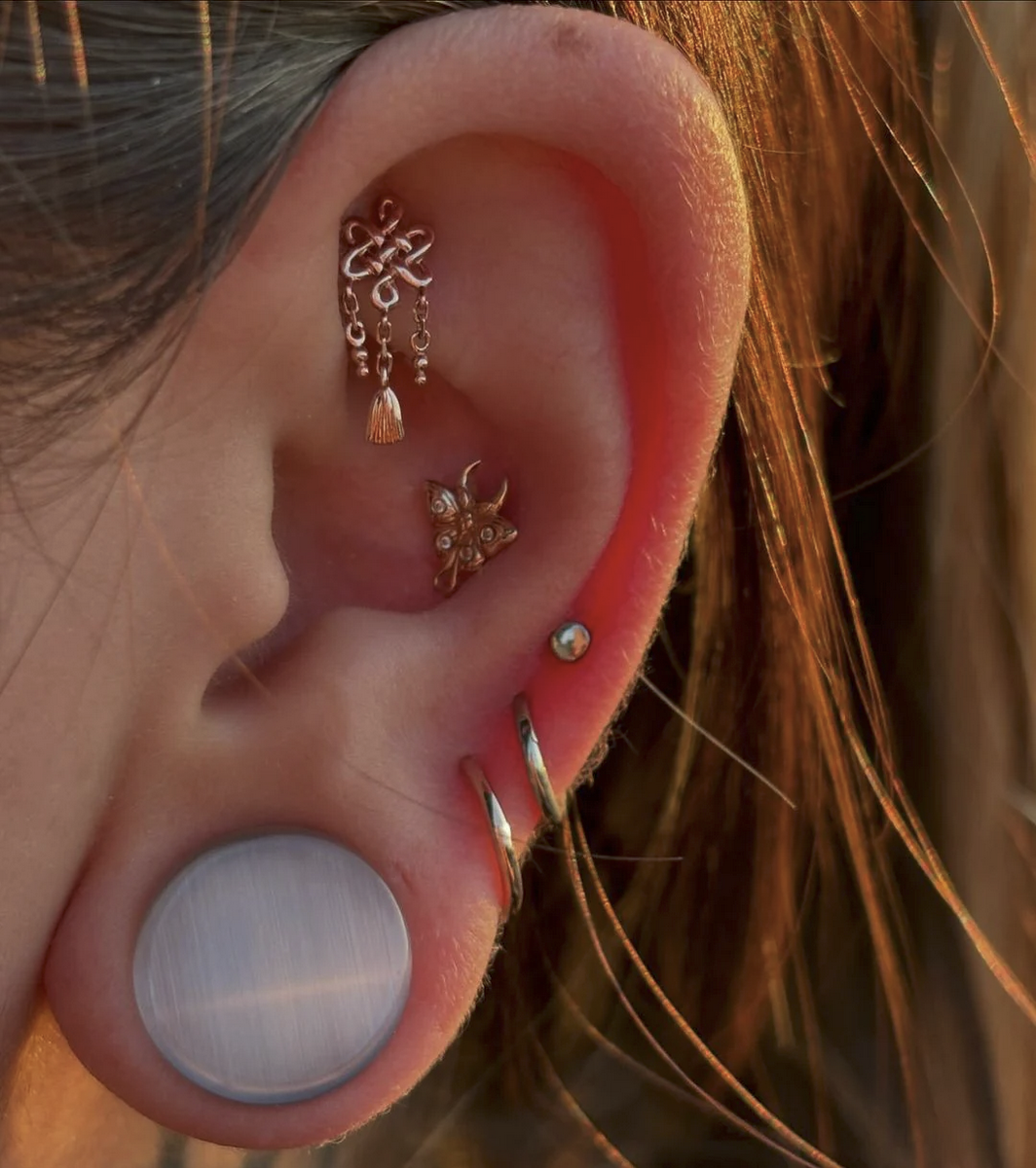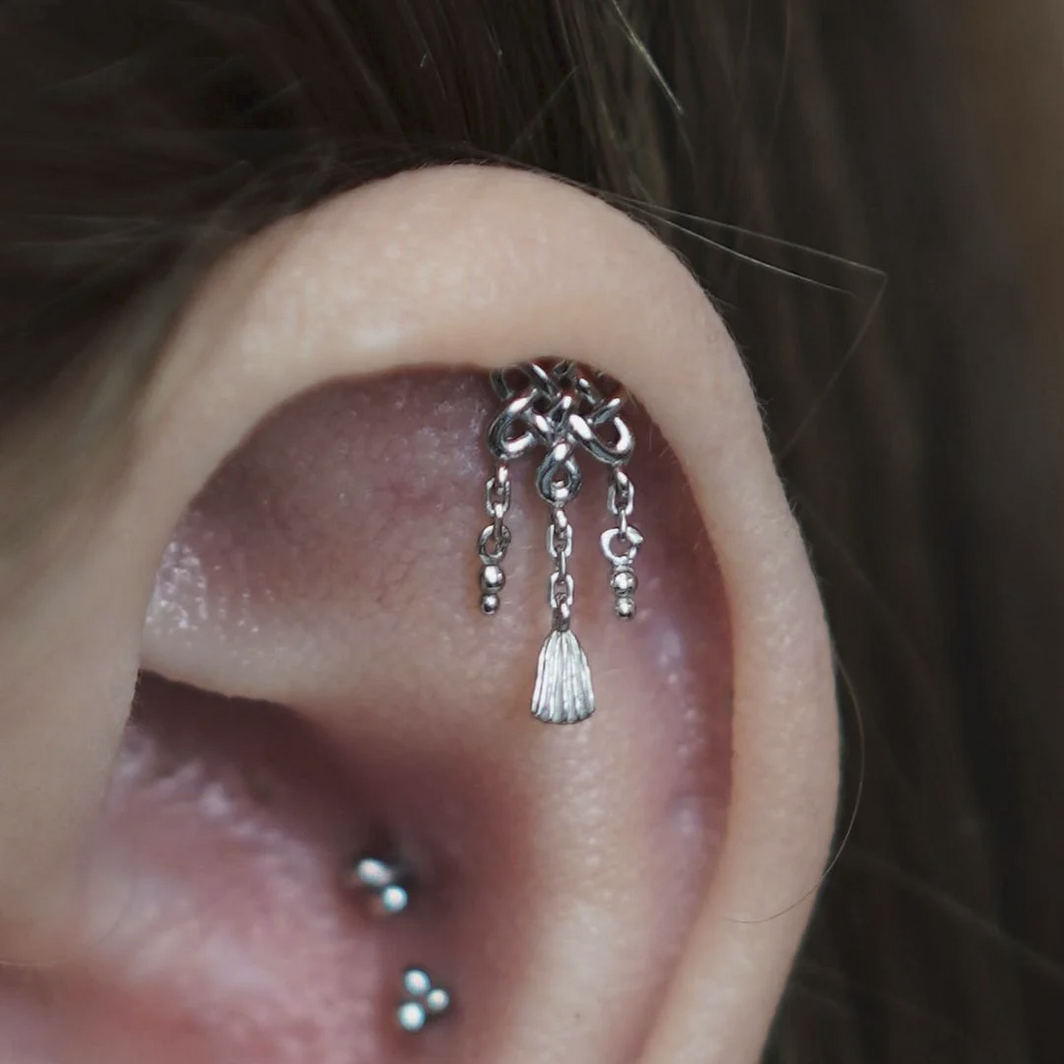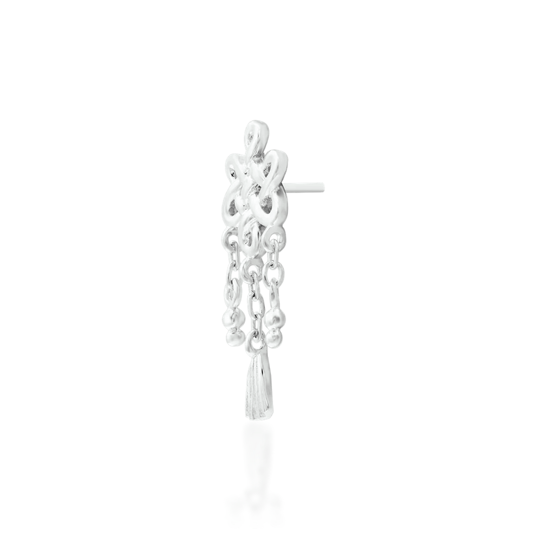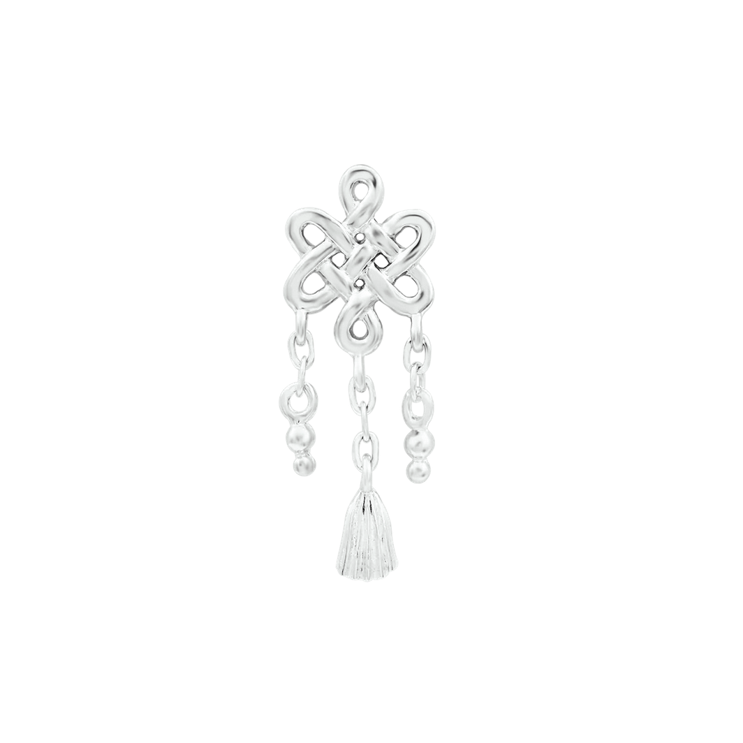 Our Pan Chang knot threadless end measures 5.4mm x 15mm and is available in yellow and white gold.
