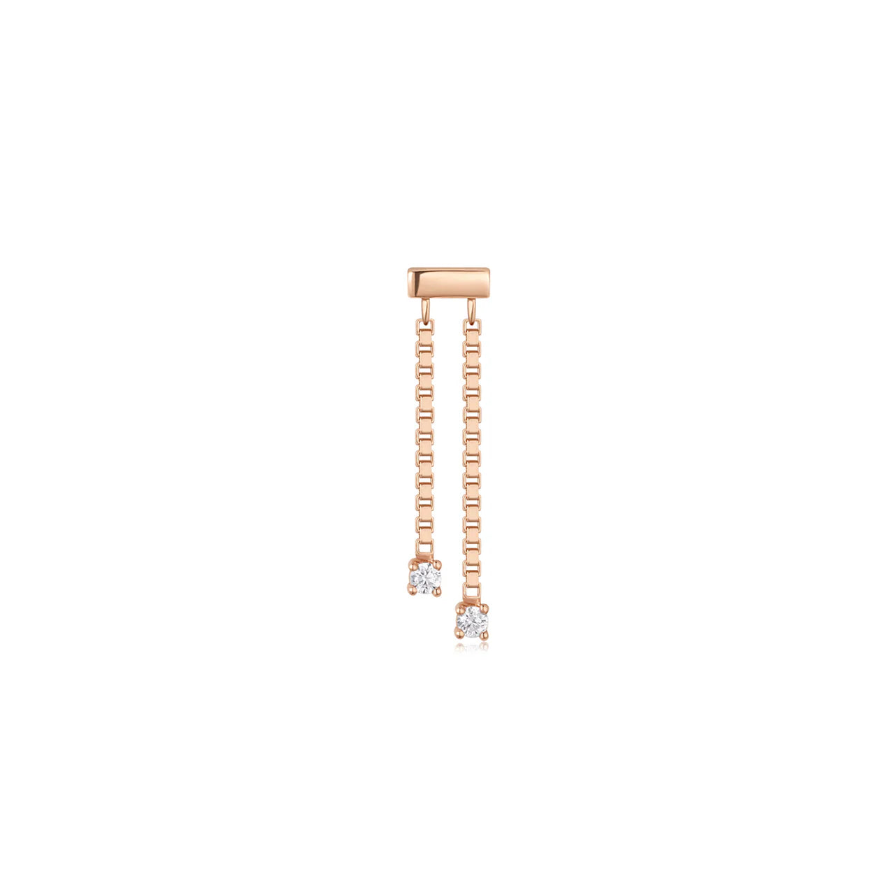 Double down on drama and brilliance with Powerplay! This bold dangle design features two sleek box chains, each ending with a prong-set gemstone for a captivating touch of elegance, best used in a Hidden Helix!