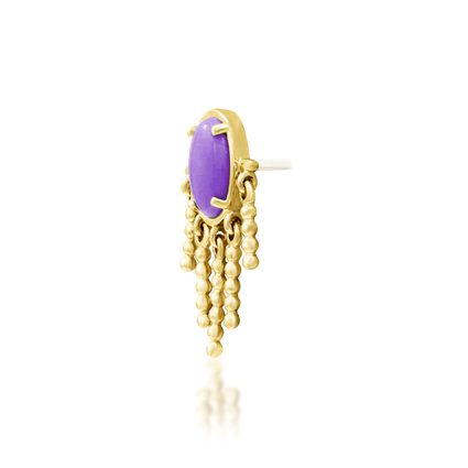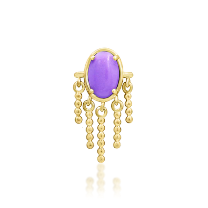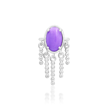 Sienna - a stunning fusion of elegance and movement. Featuring a beautifully set oval-cut gemstone, this piece is adorned with delicate beaded chain dangles.