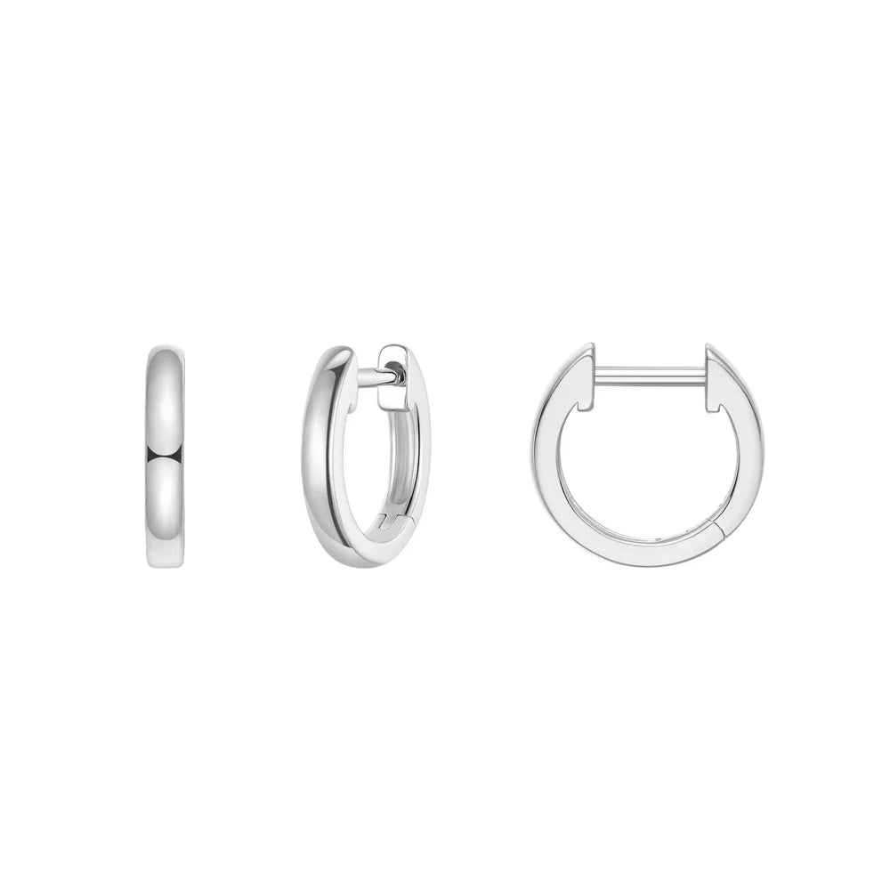 A small solid gold hoop with a straight post that clicks into place. Easy to use and versatile. Traditional or standard gauge wearing surface