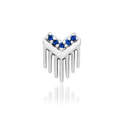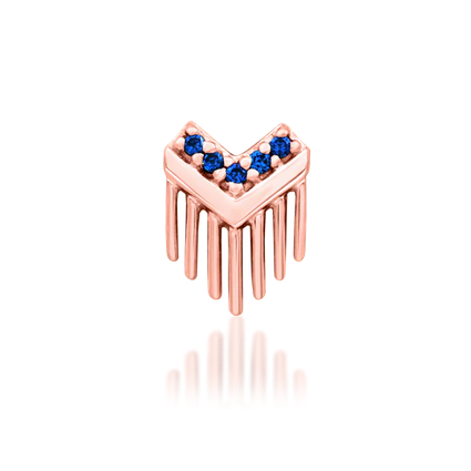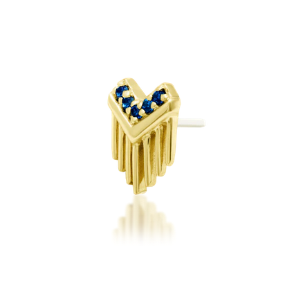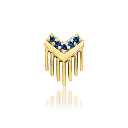 Valour is Chevron Redefined: Bold, Brilliant, Unstoppable! Cast in opulent 14k yellow gold, this stunning piece is set with a row of rich blue sapphires, forming a commanding chevron design. The flowing gold fringe creates a sense of movement and vitality, embodying courage and charisma.