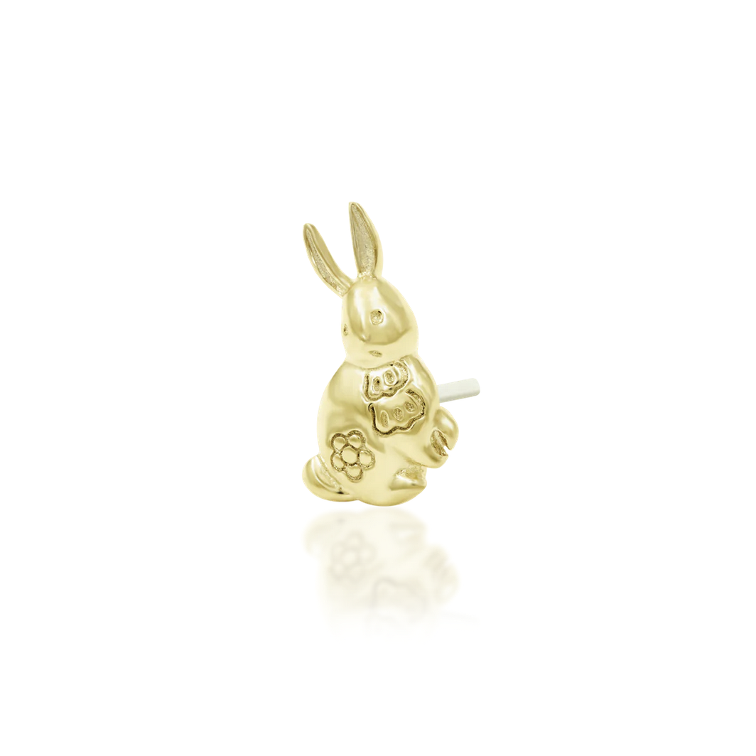4mm x 7.1mm rabbit end with delicate carvings available in 14k yellow, white and rose gold.